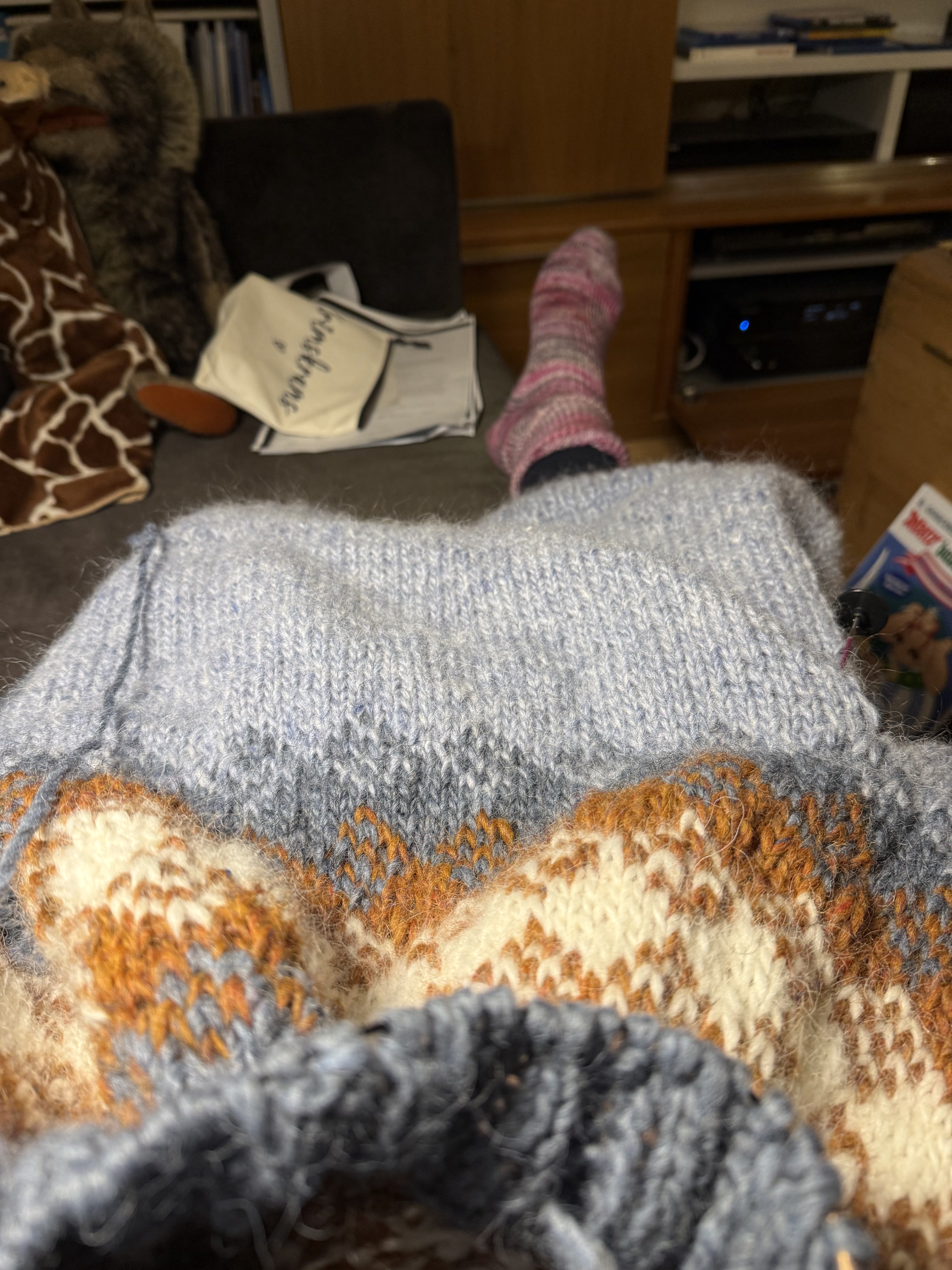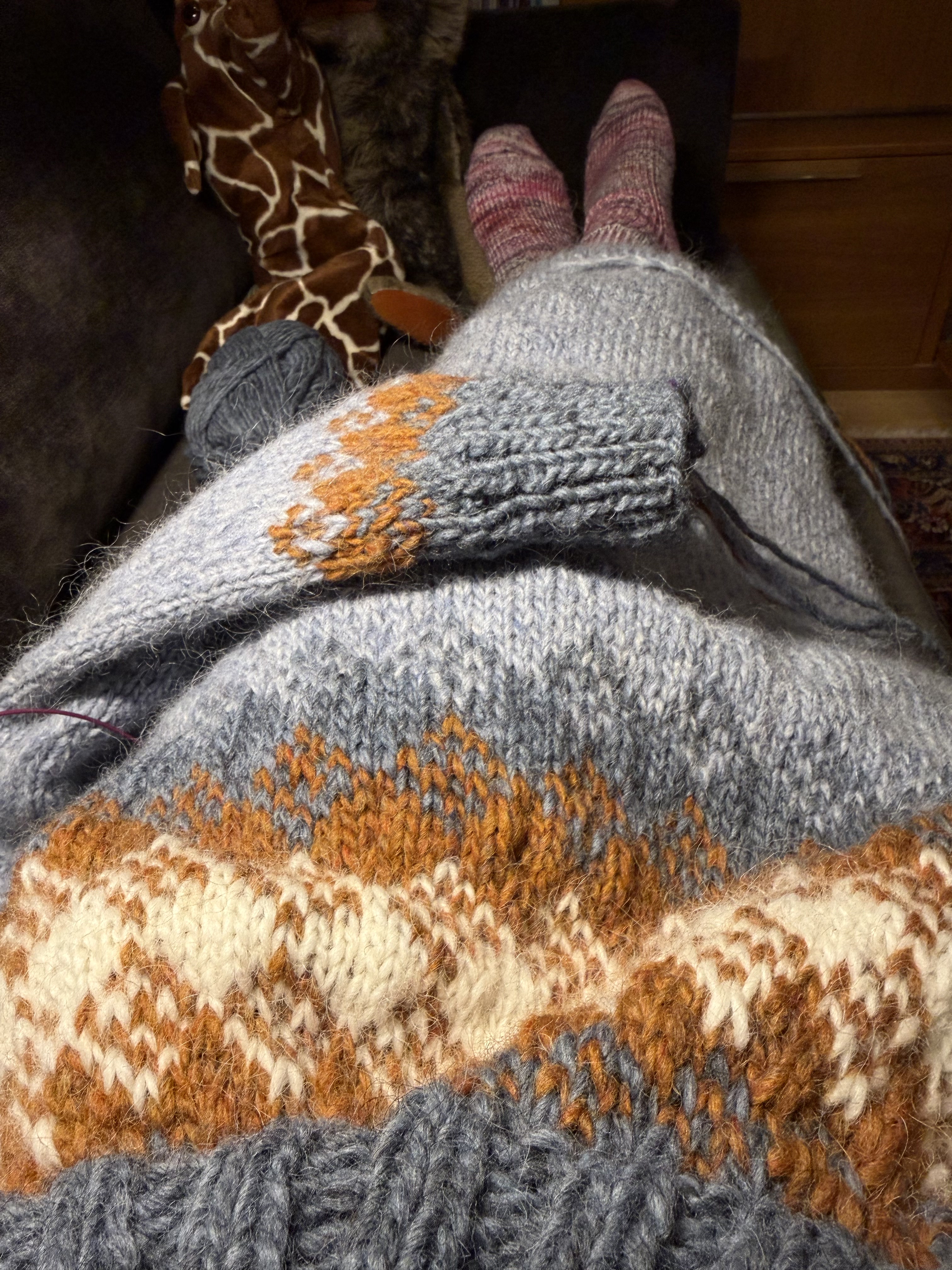 Schon beim Stricken hatte ich es behaglich war, besonders als das Strickstück schon etwas größer wurde: