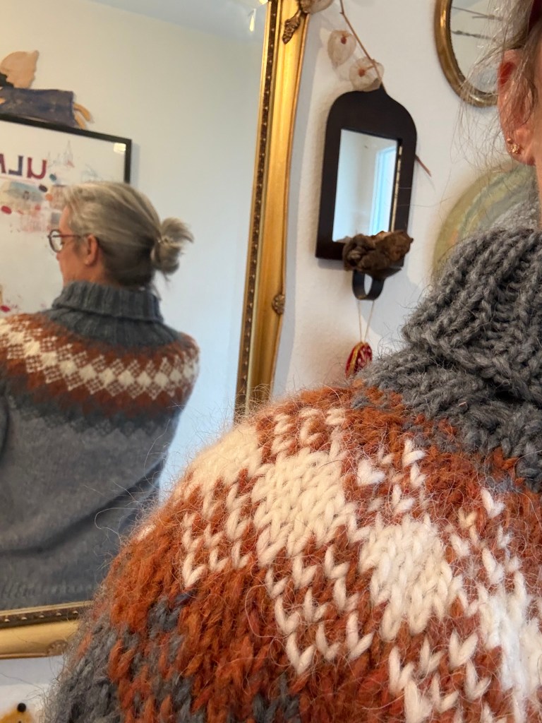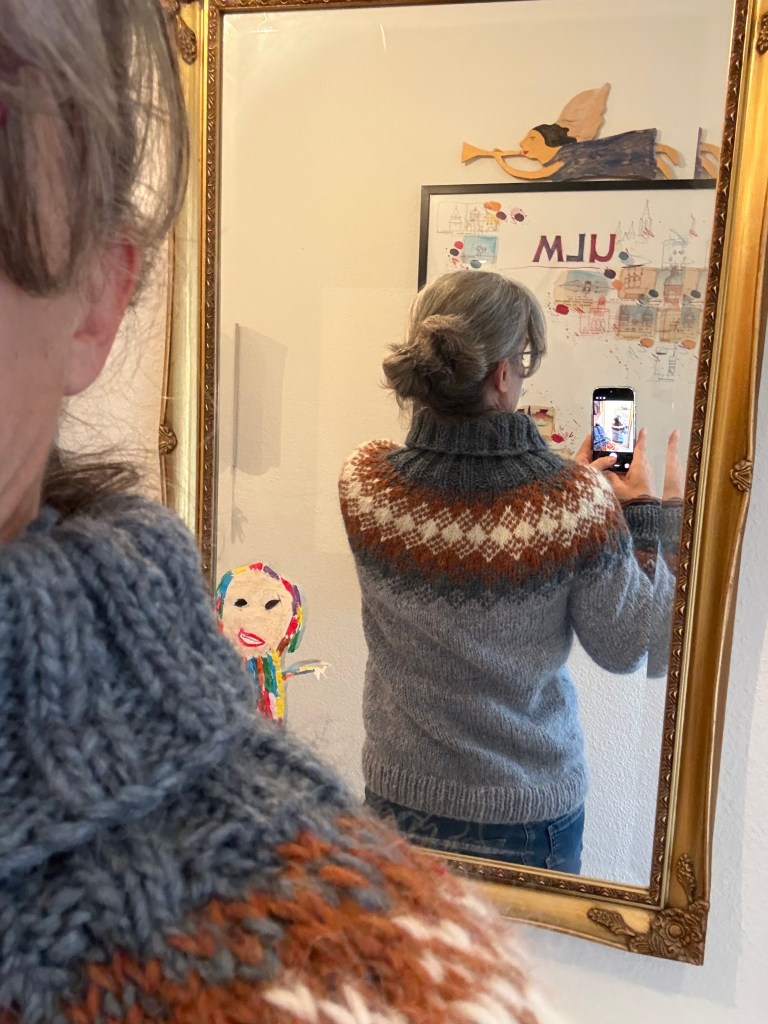 Und am Ende noch ein ehrliches Wort. Islandwolle kratzt. Sie kratzt wirklich. Ich bin echt hart im Nehmen, aber sie kratzt. Ich muss was drunter ziehen. Aber das gehört ja eh so: Traditionell wird ein solcher Pulli als oberste Schicht getragen, drunter kommen – je nach Wetter: Merino/Fleece/Softshell oder alles zusammen.