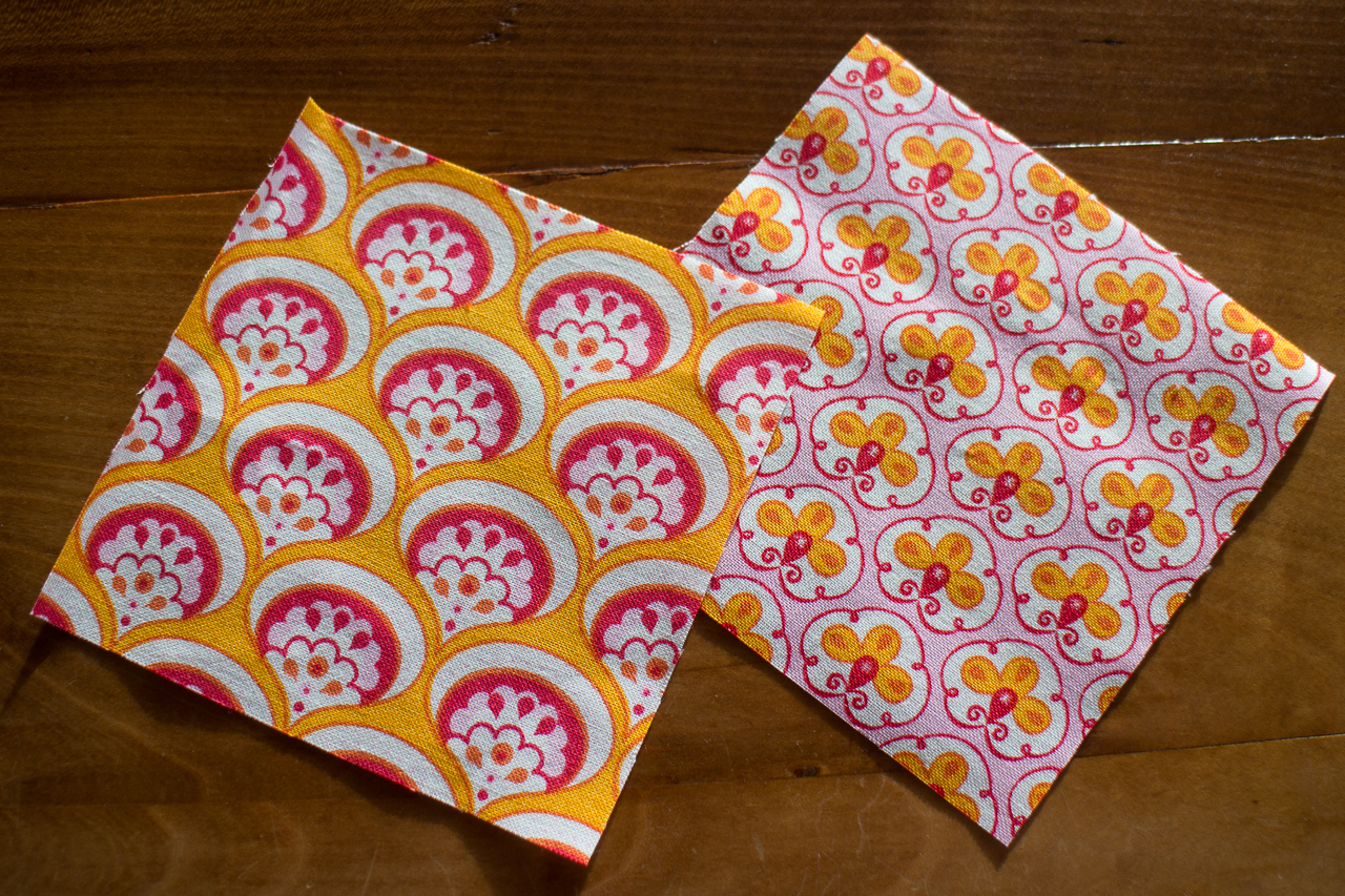Ein paar Tage lang sah es draußen ja nach Frühling im Januar aus, heute morgen allerdings war alles weiß draußen. Dafür blühen drinnen jetzt erste Stoffblumen. Diese sind einfach zu nähen… Zuerst zwei Stoffquadrate ausschneiden:
