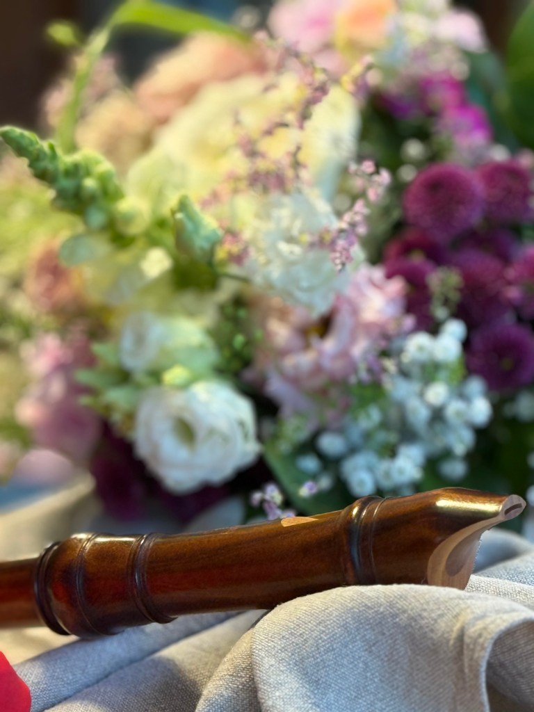 Und Flöte spielen – optimal: Wir brauchen Lockerheit und Aufrichtung im Körper, die Flöte wiegt fast nichts, belastet den Rücken nicht. Und wir atmen tief in den Bauch und kontrolliert wieder aus. Und die Töne vibrieren unter unseren Fingerspitzen. Mit einer einzigen Flöte kann man eine ganze Kathedrale zum Klingen bringen. Wunderbar.
